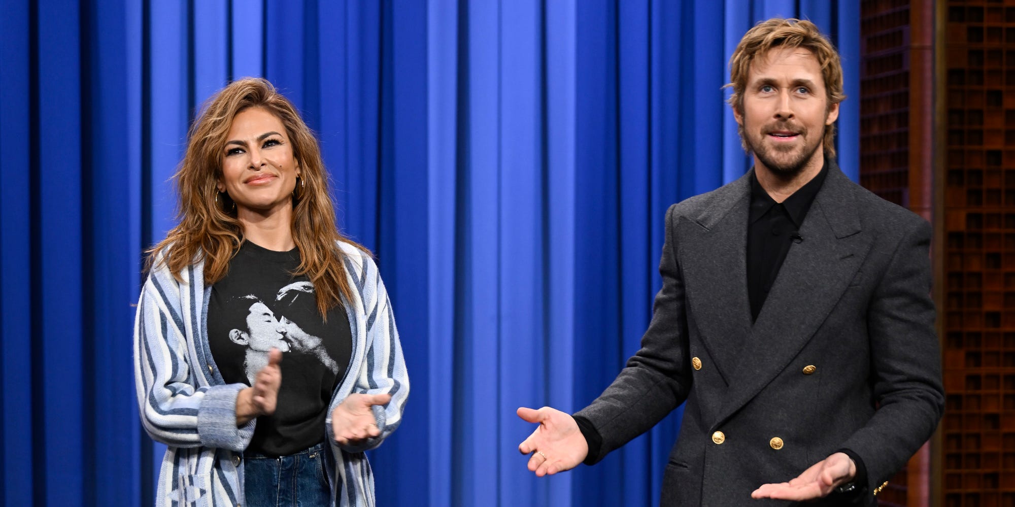 Mendes joined Gosling onstage during his The Tonight Show Starring Jimmy Fallon interview on March 5, marking their first official public appearance in more than a decade. During the episode, Gosling surprised Mendes, who had been watching the interview backstage, with a birthday celebration.